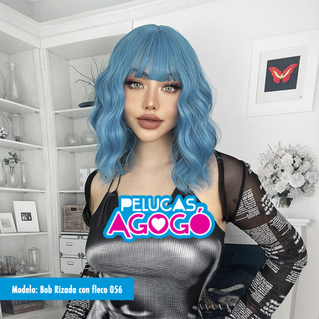 Peluca Mediana Ond Azul Aqua con fleco